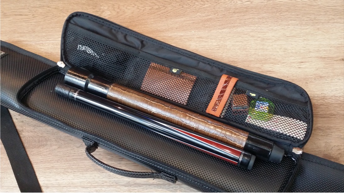 斬キューケースのポケットに色々収入した状態